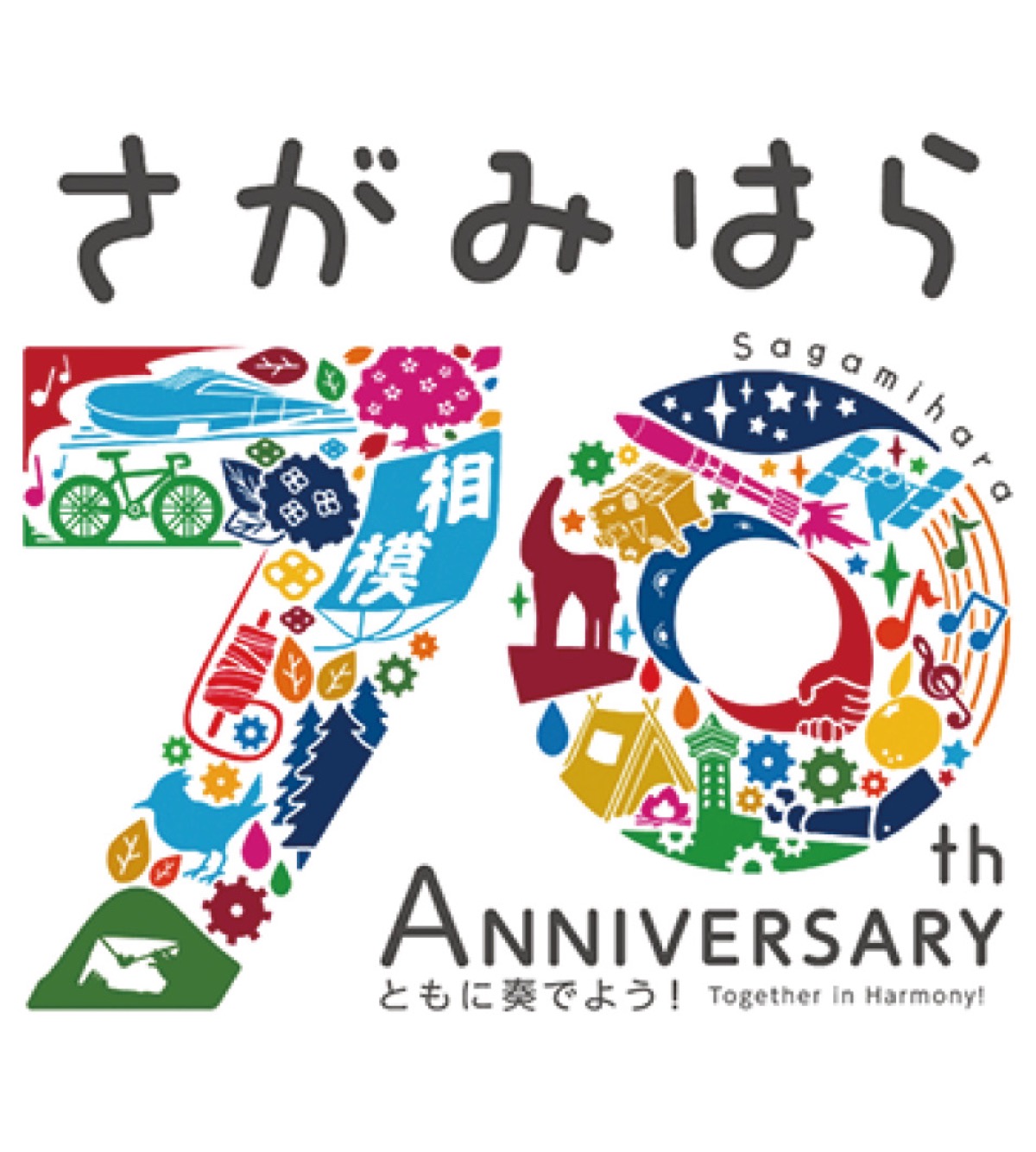 決定したロゴマークは「70」の文字に市制70年の歩みを詰め込んだデザイン。先人から受け継いできた相模原の歴史と、自然、宇宙、生き物、産業が繋がり、人と人が手を取り合って発展してきた様子を表現している。