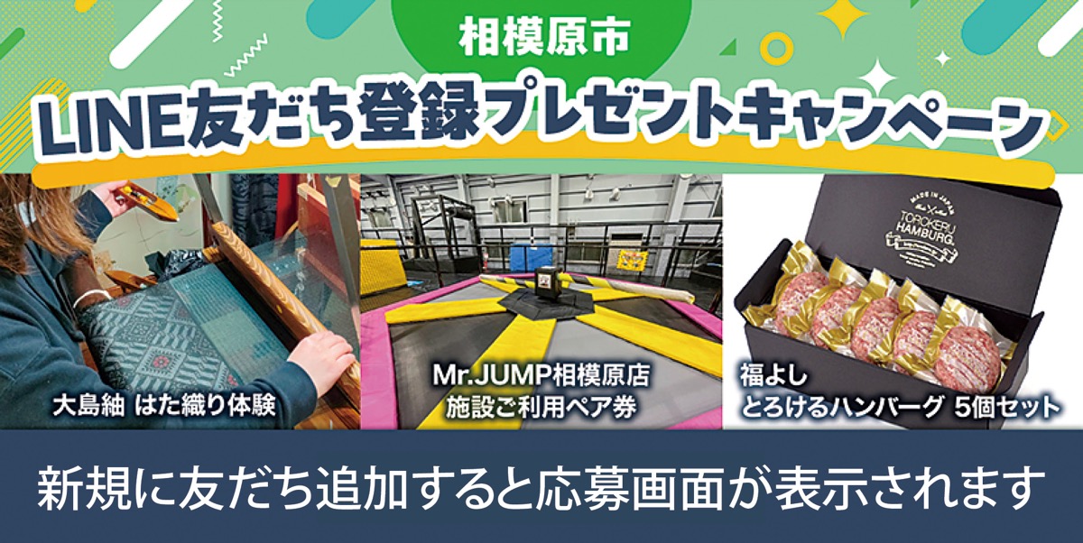 相模原市は6日、市LINE公式アカウントを新規に友だち登録すると、市内にアトリエがある大島紬のはた織り体験やトランポリン施設のペア利用券などが当たるプレゼントキャンペーンをスタートした。応募締切は3月21日(木)迄。