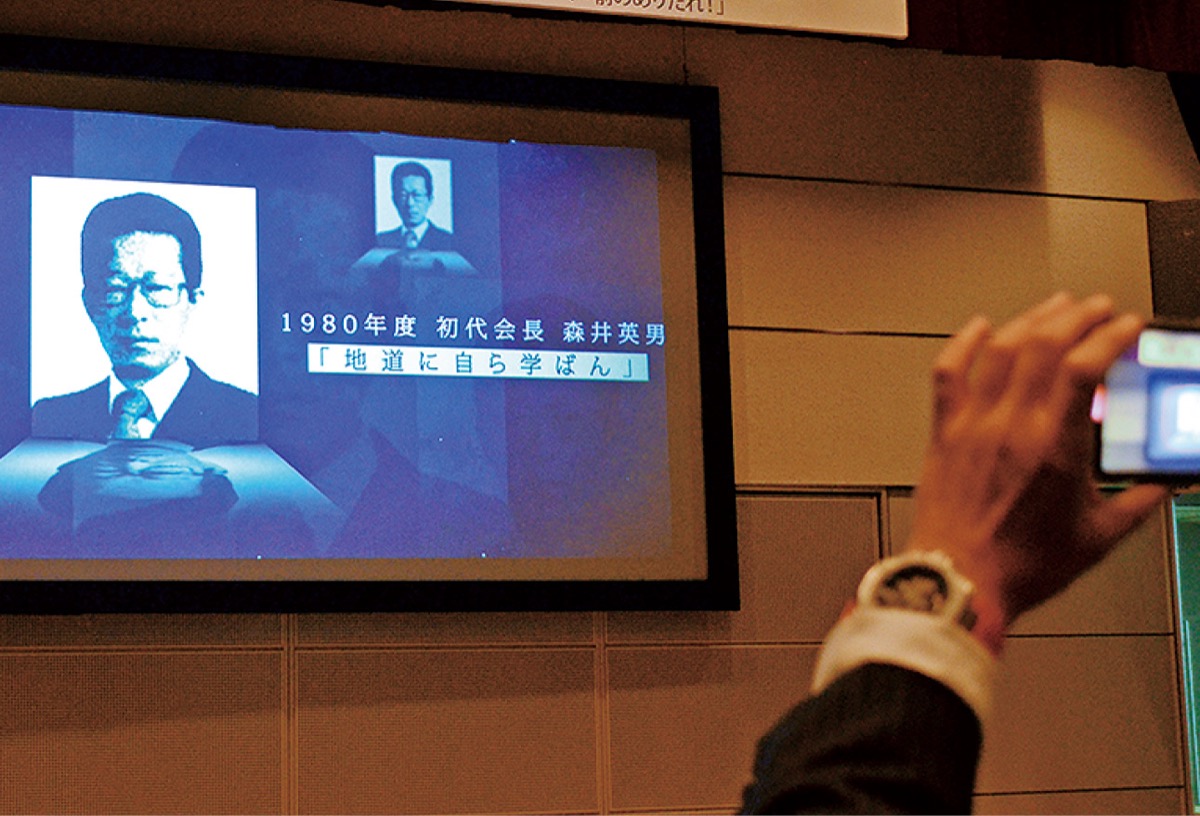 その後企画された同研究会45周年の祝賀会では歴代会長をはじめ、OBOGら100人以上が集まった。その場で前年度会長の本庄浩義さん(ミナシアホールディングス)からバトンを受けた沼澤さんは年間テーマを「前のめりたれ!」とし、「全力で突き進んでいく」と宣言した。また、高校時代の野球部でライバルだった選手が3年時の大会でホームランを打ったことに触れ、「自分は途中で退部してしまった。あの時、彼の活躍を見て本当に後悔した。あれ以来、悔いを残さず努力をしようと意識が変わった」など現在の経営姿勢につながるエピソードを披露し、会場を沸かせた。