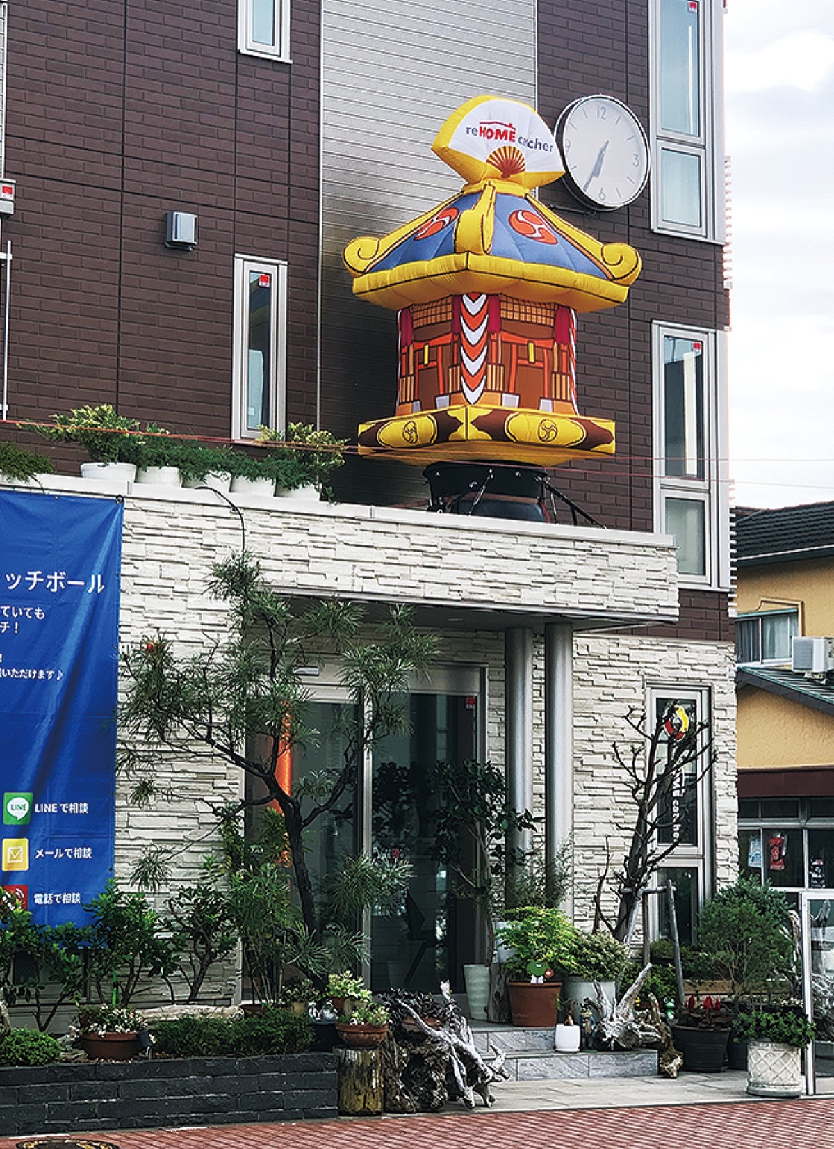 神輿バルーンは7月15日過ぎに登場。鳳凰などが掲げられる大鳥部分には社名が記されている。北畠社長は「地元に根付いた企業として、上溝を象徴するひとつでもある夏祭りを盛り上げる一役になれれば」と話している。