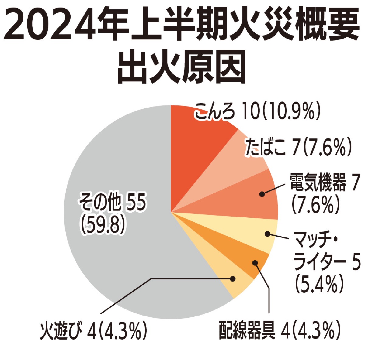 相模原市消防局が今年の上半期(1月〜6月)中に市内で発生した火災の概要を発表した。期間中の火災発生件数は92件で前年同時期に比べて12件増加。出火原因では、こんろが10件(10・9%)でトップ、以下、たばこと電気機器がそれぞれ7件(7・6%)、マッチ・ライターが5件(5・4%)と続いた。死者は前年同時期に比べ2人減っているものの、建物火災で1人、車両火災で1人が亡くなっている。負傷者は前年同時期と比べ6人増え22人だった。