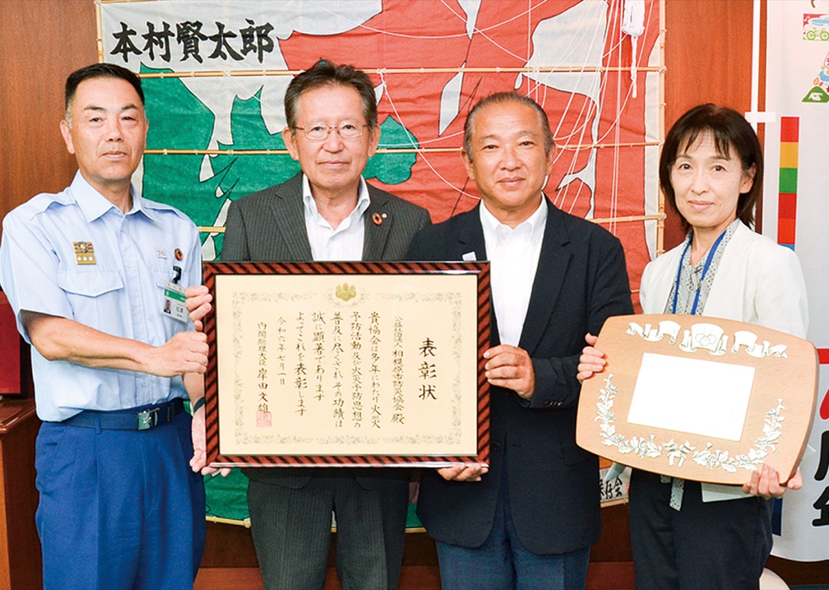 同表彰は、産業災害、交通事故、火災など、国民の日常生活の安全を脅かす災害の発生の防止を図るという趣旨で行われているもの。同会は防災体制の強化促進に資する事業を行い、災害に強いまちづくりを推進していることなどが、防災意識の高揚に多大な貢献をしていると表彰に至った。