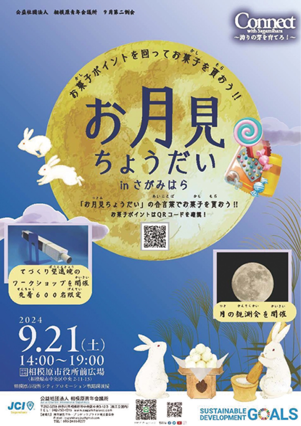 お菓子とスタンプを集めながらまちを歩く子ども向けのイベント「お月見ちょうだい」が9月21日(土)、相模原市役所周辺で開催される。参加無料。午後2時から7時まで。相模原青年会議所(JC)の主催。