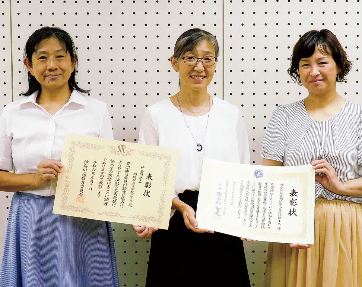 令和6年度優良PTA神奈川県教育委員会表彰の表彰式が9月10日、神奈川県庁で開かれた。県内の小中高校36校のPTAが表彰され、相模原市中央区内では唯一、県立相模原高校PTA(眞柄仁美会長)が表彰された。PTA役員と生徒が連携し、新たな取り組みを実践するなど積極的な姿勢が評価された。