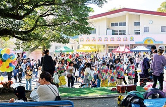 水郷田名の認定こども園・田名幼稚園(永保貴章園長)で11月9日、恒例の秋祭りが開催された。今年も晴天に恵まれ、園児や卒園生、地域住民など多くの人でにぎわった=写真。