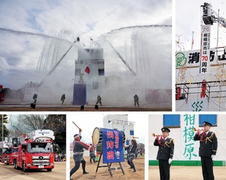 消防団ラッパ隊の吹奏、消防部隊による車両分列行進のほか、藤野方面隊による民謡「八木節」を脚色した「消防八木節」も披露され、活気のあるかけ声と演技、太鼓が会場を盛り上げ、観客から大きな拍手が送られていた。