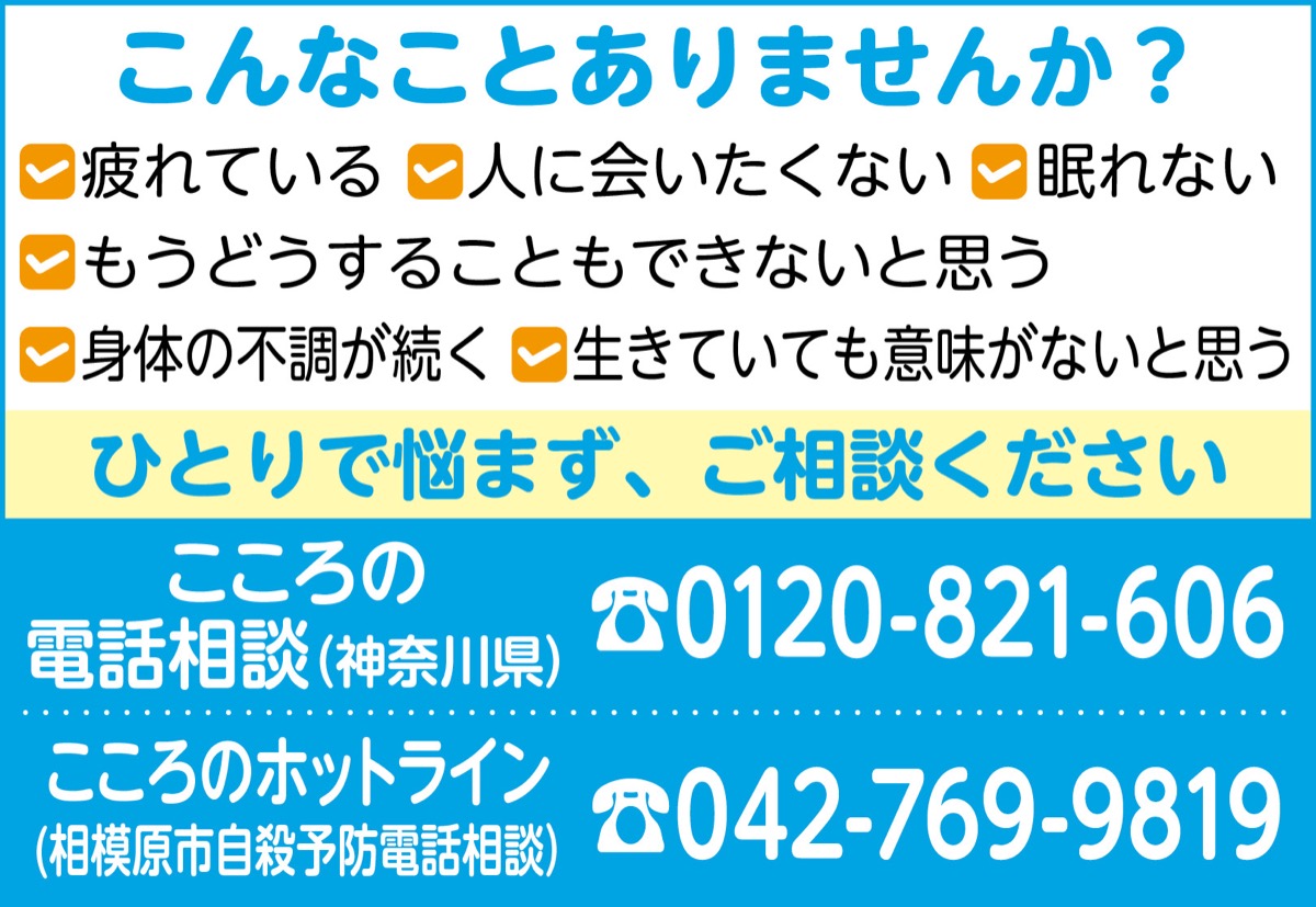 毎年3月は自殺対策基本法に基づき「自殺対策強化月間」に定められている。相模原市は昨年、「第3次相模原市自殺総合対策の推進のための行動計画」(24年度〜28年度)を策定。15年に122人だった自殺死亡者数を30%以上減少させることを目標に掲げ、市民一人ひとりが自殺への理解を深め共に支え合うことで1人でも多くの命が救えるとしている。重きを置く施策のひとつが、悩みを抱える人の変化に気付き、適切に声をかけることなどを通じ、自殺を未然に防ぐ「ゲートキーパー」の養成だ。
