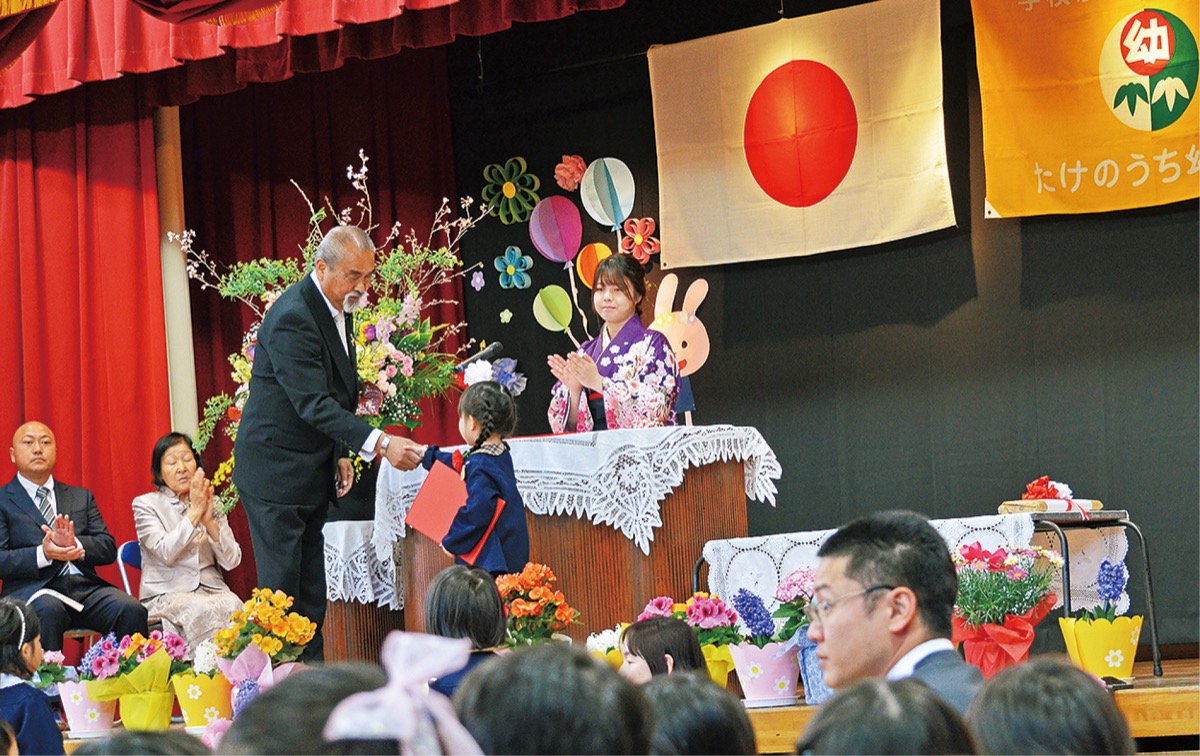 小磯園長は卒園児たちに向けて「みなさんは、できないことや知らないことを先生に教わりながら一生懸命やってきた。それはすごいこと。これからもいろんなことを一生懸命やってください」と呼びかけ、「あいさつと努力を忘れず、もっともっと大きくなってください」と結んだ。