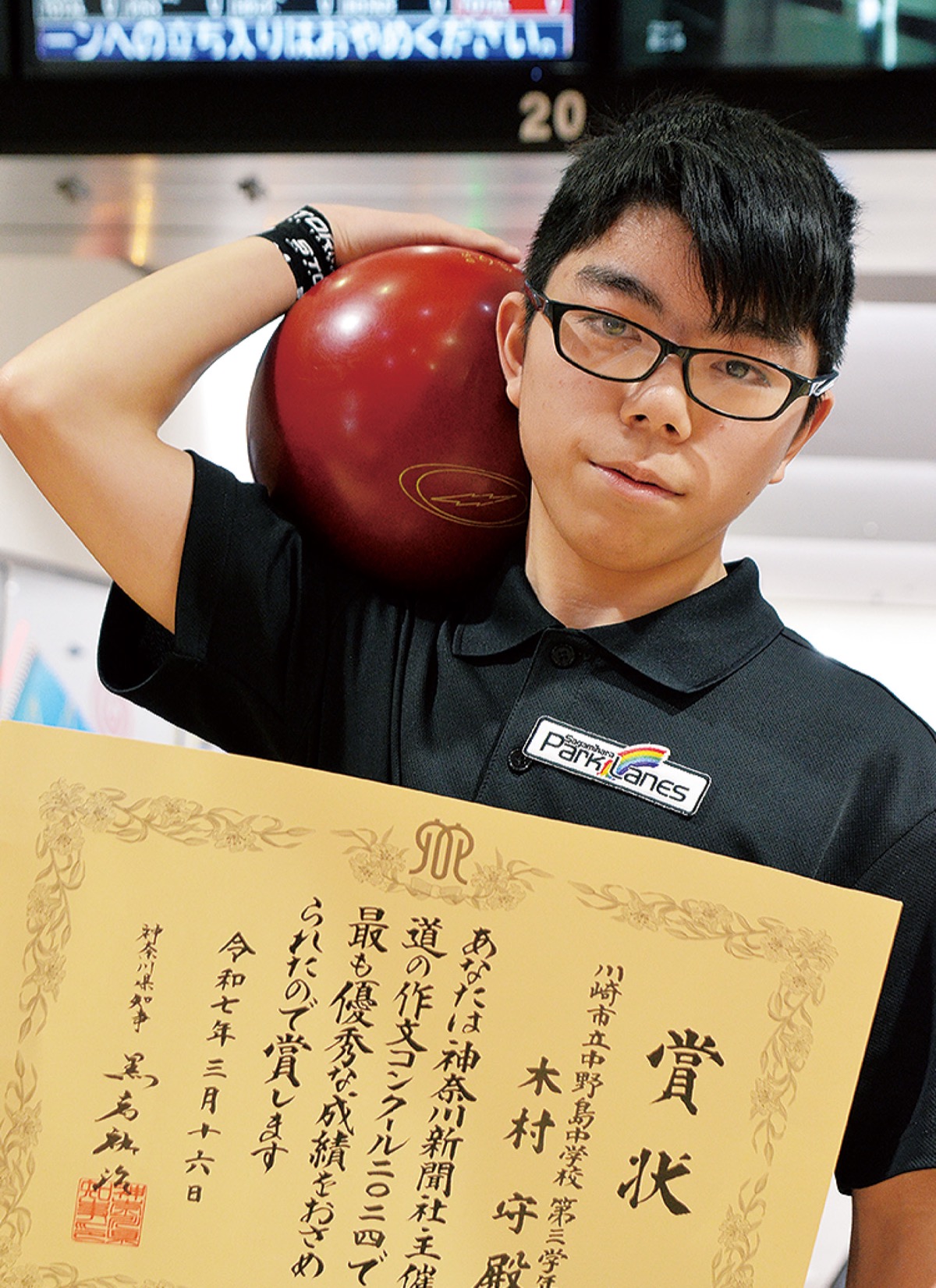 神奈川新聞社が主催する「道の作文コンクール2024」の入賞作品がこのほど発表され、市内のボウリング場・相模原パークレーンズ(相模原)に通う木村守さん(川崎市立中野島中3年)=写真=の作品が最高賞の神奈川県知事賞に輝いた。
