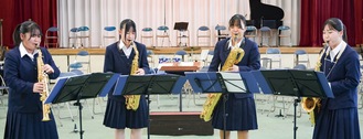 田名中の4人が演奏したのはサックス四重奏曲「バック・バーナー」(F.ティケリ)。顧問の榊原聖人教諭が「この曲を演奏しきれれば、間違いなく高い評価を得られるはず」と選曲した難曲だ。1月の東関東アンコンでは7人の審査員が「技術」「表現」で高評価を与え、「見事なアンサンブルだった」「完全に曲を自分たちのものにしている」など講評には賛辞の言葉が並んだ。点数は満点に1点及ばなかったものの99点。