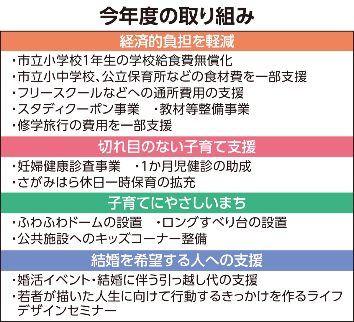 相模原市は「子育てするなら相模原」をスローガンに掲げ、子育て支援施策に力点を置いた取り組みを展開しており、利便性や豊かな自然、充実の子育て支援などから子育て世代の転入増が続いている。2025年度の当初予算では、子育て・教育事業に前年度に比べて3・5倍となる61億円を計上した。