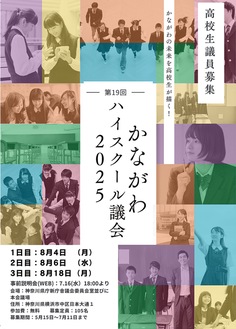 高校生が「議員」として県の取り組みを議論し知事に政策提言を行う「かながわハイスクール議会2025」が8月、横浜市内で開催される。主催する日本青年会議所関東地区神奈川ブロック協議会は現在、参加する高校生を募集している。県内在住・在学者が対象。
