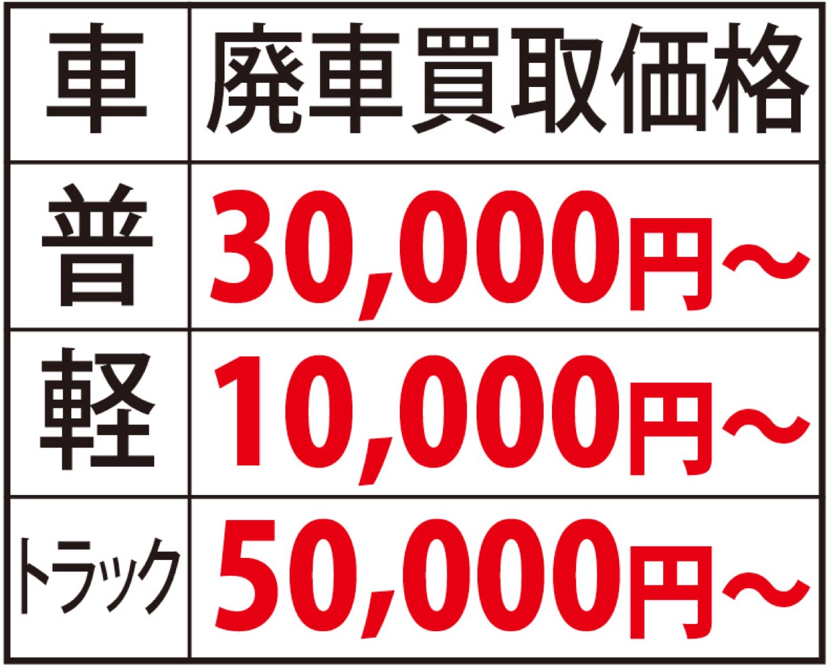「廃車は無料?お金がかかるの?」。地元で37年の実績を誇る「マグナオート」なら、お金を支払うどころか、逆にお金が貰える(現金進呈)。しかも高価買取と評判だ。昨年だけでも年間503台の買取実績がありリピーターも多い。埃まみれのポンコツでも「なんでもOK!」。電話一本で引き取りに。