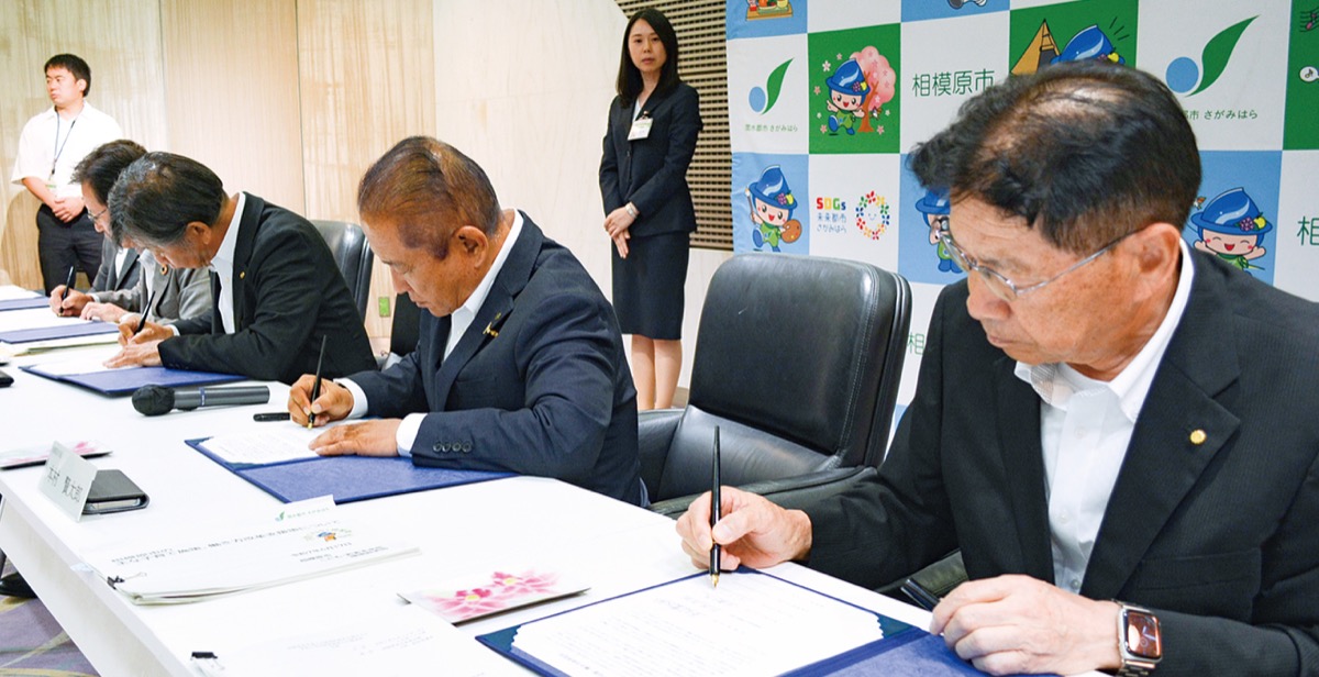 市内企業の子育て支援・働き方改革を推進し、仕事と子育ての両立を支援することなどを目的に、相模原市と市内の経済団体(相模原商工会議所、城山商工会、津久井商工会、相模湖商工会、藤野商工会)が6月17日、「子育て応援・働き方改革宣言」に署名した。今後、仕事と子育ての両立を図ることができるよう、必要な労働環境の整備を進める。