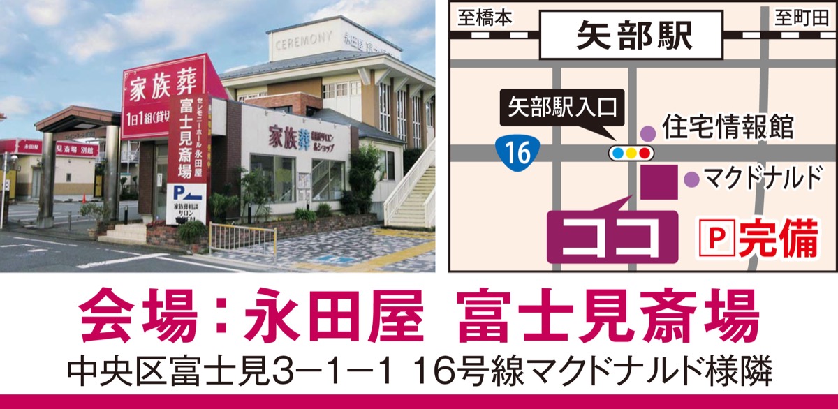 創業百十二年目、地域密着の老舗葬儀社・永田屋は8月2日(土)、富士見斎場で終活なるほど教室特別編「アクティブシニア応援企画スマホ教室」を開催する。参加無料。予約制。