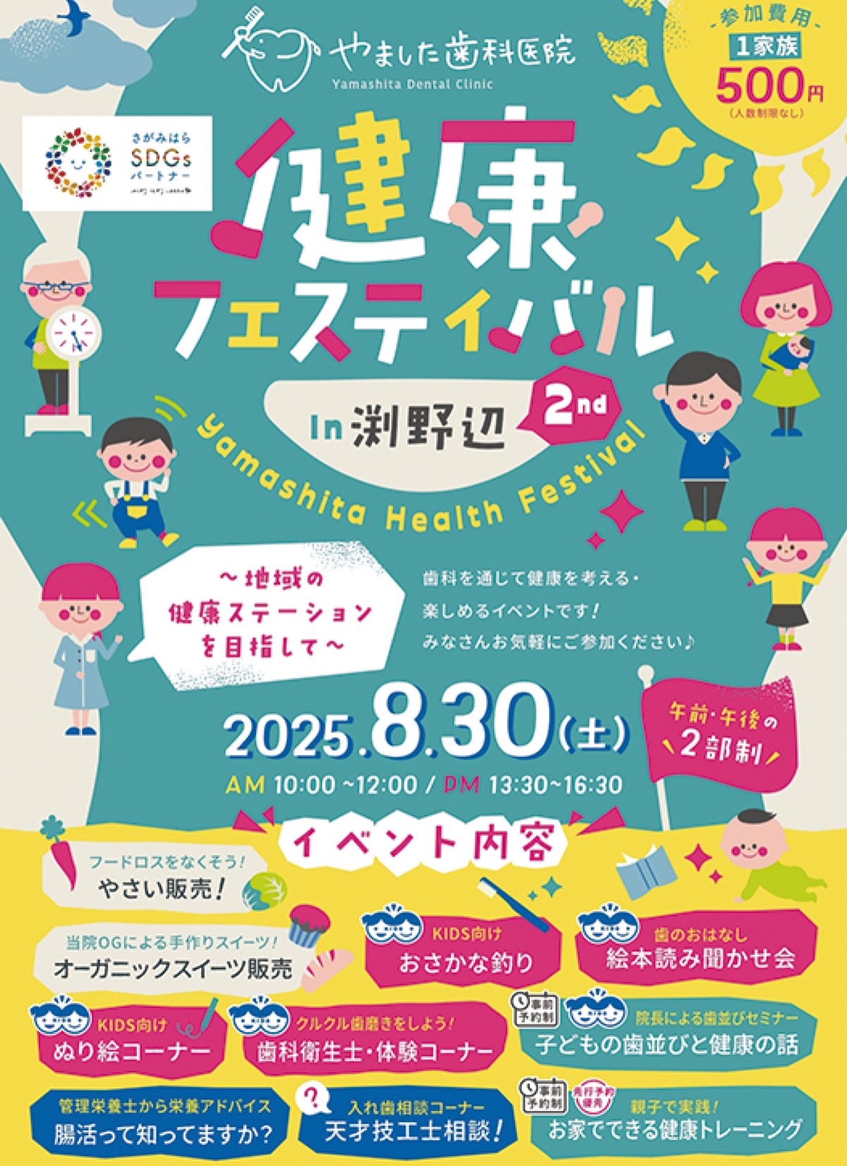 鹿沼台にある「やました歯科医院」で8月30日(土)、「健康フェスティバル in渕野辺 2nd」が開催される。午前10時から12時、午後1時30分から4時30分の2部制。