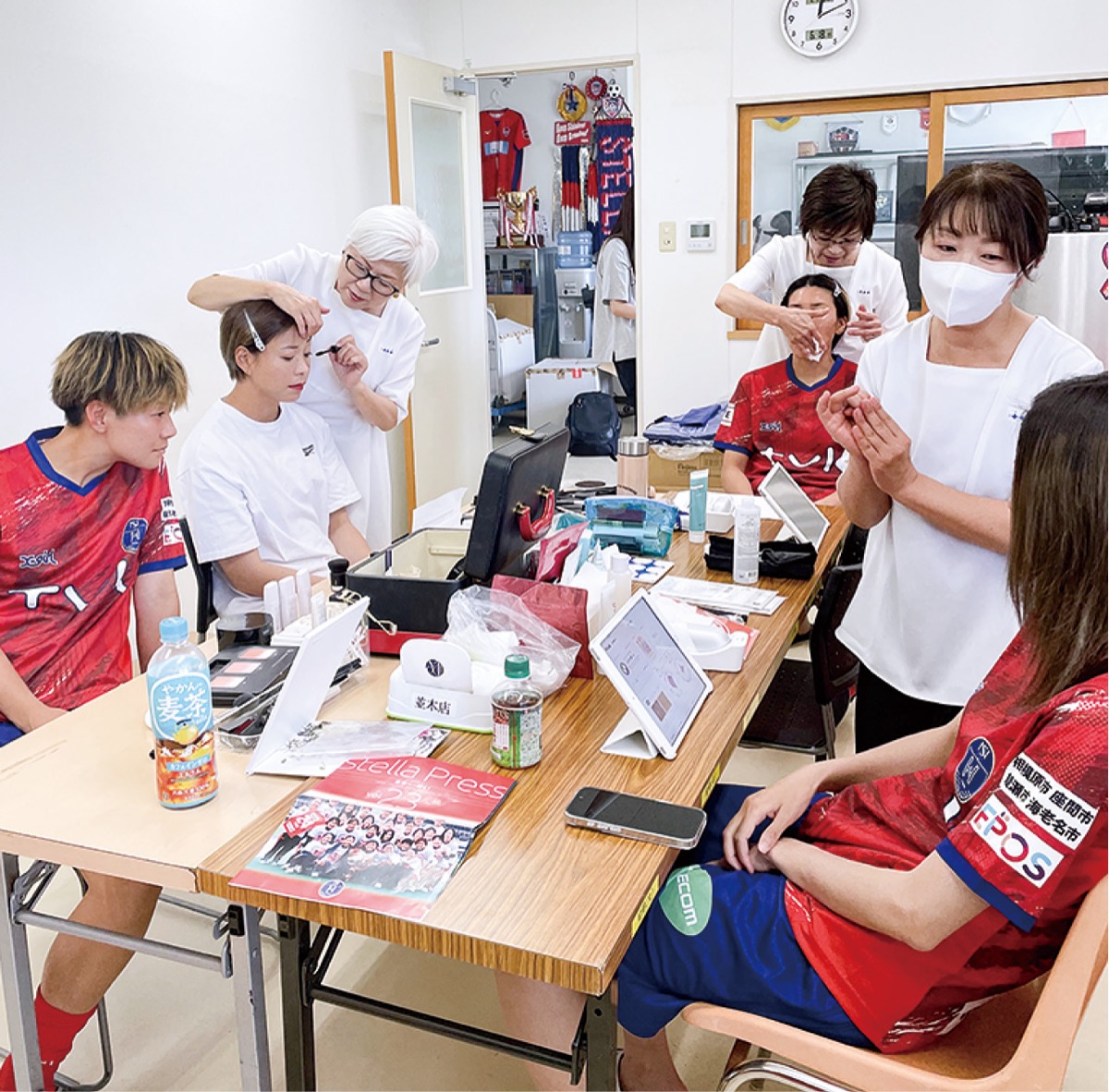 同店が2021年に「さがみはらSDGsパートナー」に登録したことがきっかけとなり、チームとの接点が生まれた。株式会社POLAが目指す「地域に根差した活動」を模索し「私たちにもできることは何かないか」と考えていたところ、チームからメイクを担当してほしいと声がかかった。「選手もモチベーションにしてくれている」と岡本雅美オーナー。「応援する気持ちは年々大きくなっている。今年も頑張って」