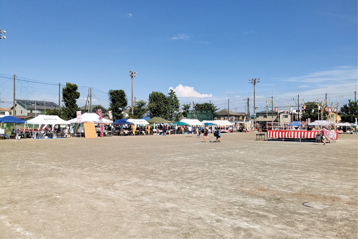 中森隆太選手と宮里侑樹選手が8月2日、第42回田名ふるさとまつり=写真下=に参加した。ブースで「魚釣りゲーム」やうちわの配布を実施。うちわの配布には田名中学校の生徒もボランティアとして協力した。