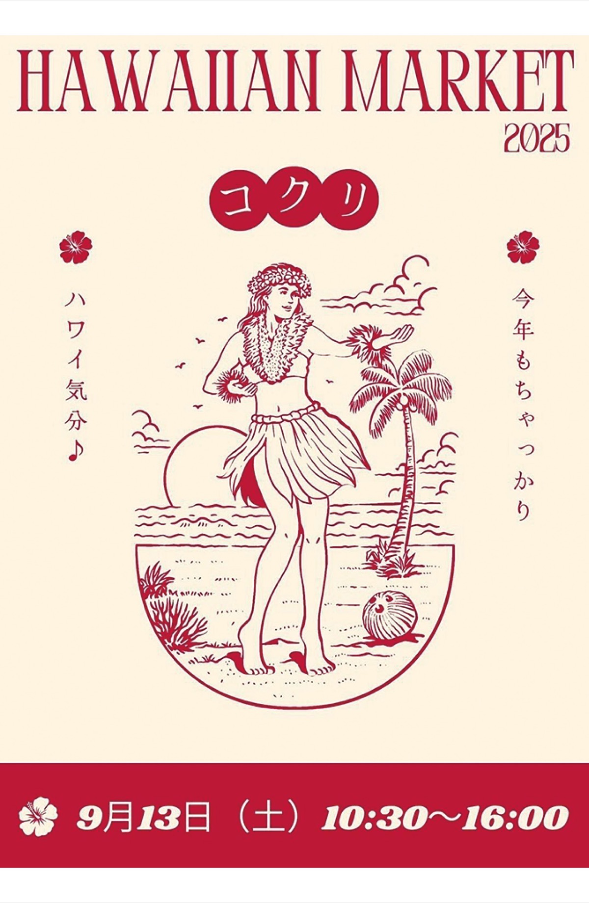 ゆったりハワイ気分を楽しめる「コクリハワイアンマーケット」が9月13日(土)、西門商店街「青い手」近くで開催される。午前10時30分から午後4時まで。西門を拠点にイベントの企画運営などに取り組む団体「コクリ」の主催。