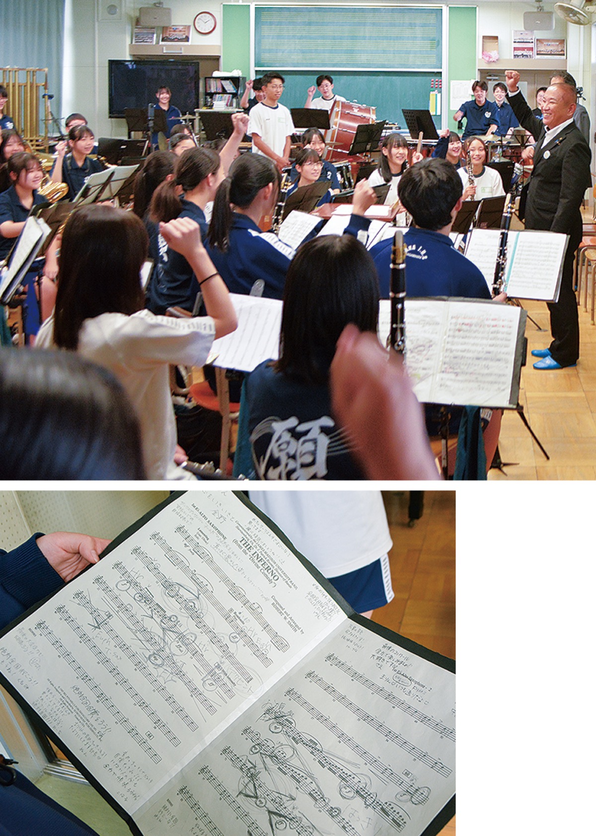 同コンクールは「吹奏楽の甲子園」と言われる舞台で、市内からの出場は今回が初。本村市長が激励に駆けつけた。