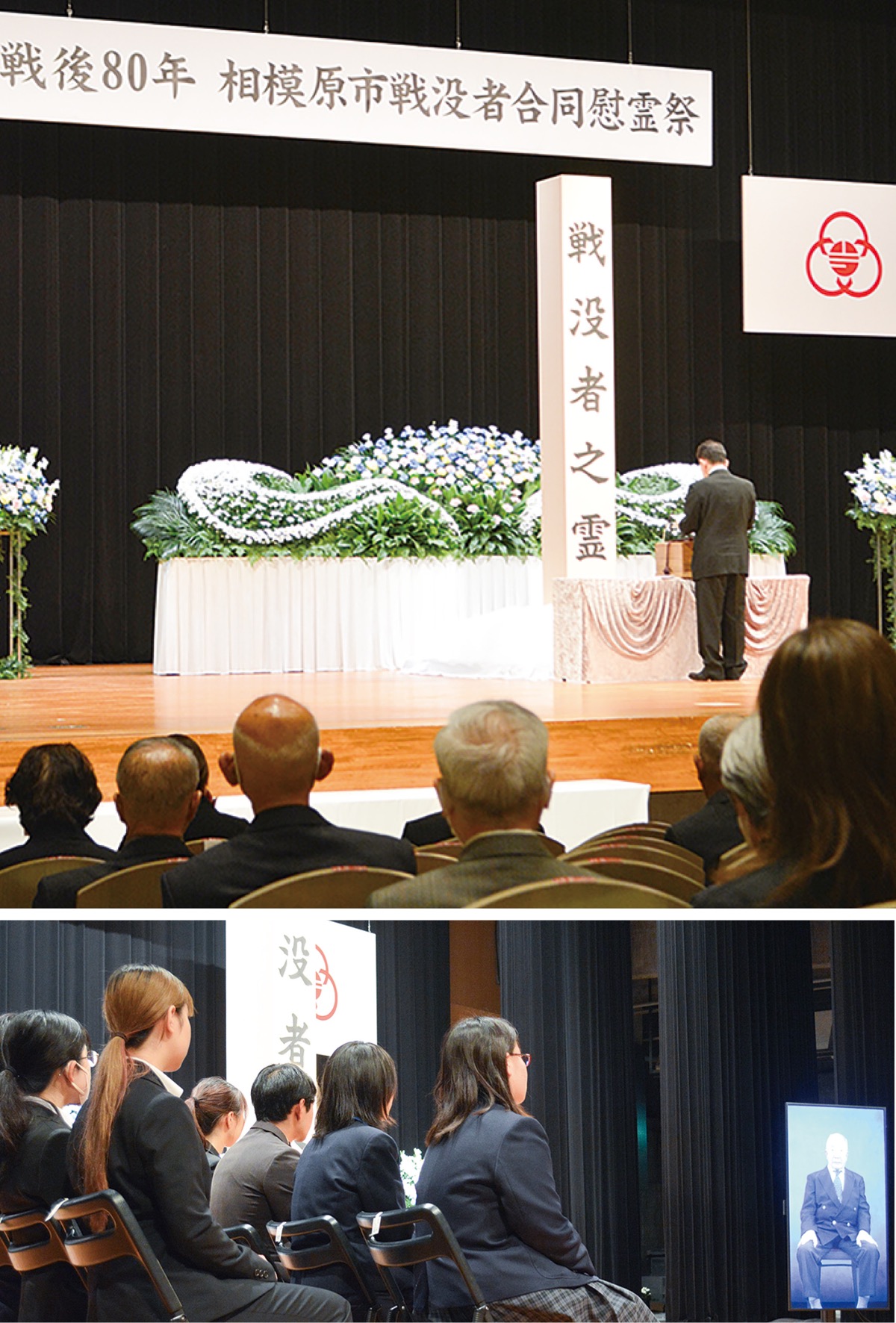 「平和の誓い」を担当した相模女子大学高等部3年の浅川凛音さんと阿蒜夕愛さんは「日本はこれから戦争を知らない世代だけの世界になっていく。戦争の悲惨さや平和の尊さを語り継いでいく必要がある。今を戦前にしないためには人種、宗教差別、自国だけを優先する考えを改める必要がある」などとし、「戦争のない、皆が平和的に共存できる未来を作っていく」と力強く訴えた。
