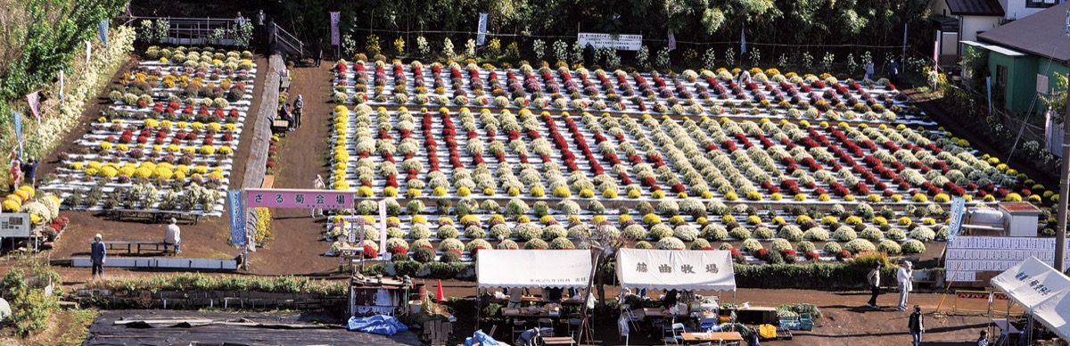 地域の風物詩として、市内外の人々を楽しませてきた新磯のざる菊。新磯地区を盛り上げようと近隣の酪農家・藤曲和美さんが中心となり、2009年からはじまった。