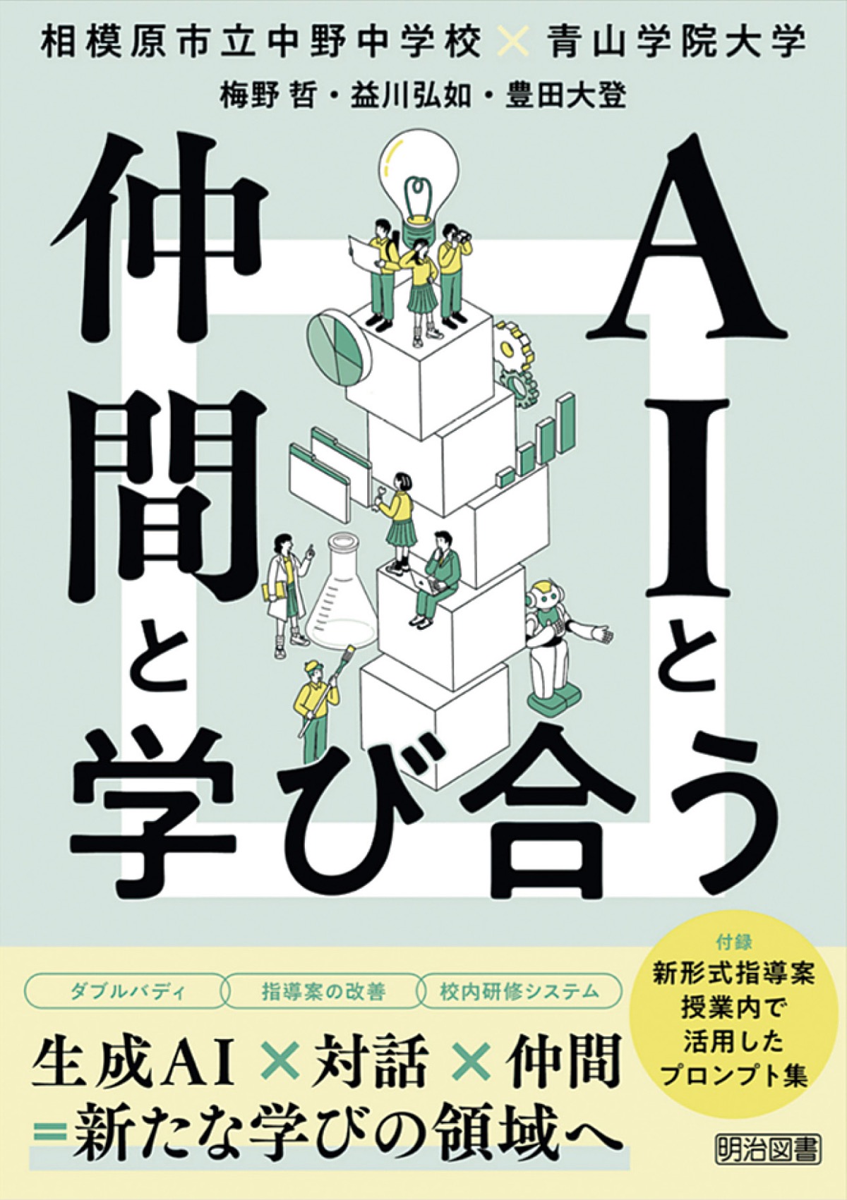これから教育現場に生成AIを導入しようとする人たちの一助になればと筆を執ったのは、同校で保健体育を教える梅野哲総括教諭、認知科学・学習科学・教育工学を専門とする青山学院大学の益川弘如教授、日本体育大学児童スポーツ教育学部の豊田大登特任助教の3人。書籍はパイロット校での試行錯誤の中で生まれた具体的な実践など6つの章で構成されている。