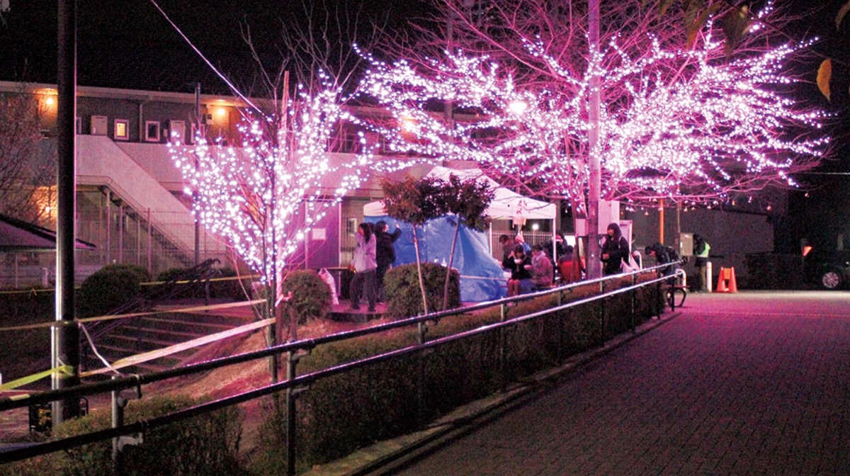 上溝地区の冬の風物詩となりつつある「上溝イルミネーション」が今年も開催される。12月13日(土)に上溝さくら公園(上溝1880の7)で点灯イベントが開かれる。午後4時から7時まで。地域住民により構成される上咲実行委員会が主催する取り組みで、来年1月10日(土)までピンク、白、金、青の電飾で園内を華やかに彩る。