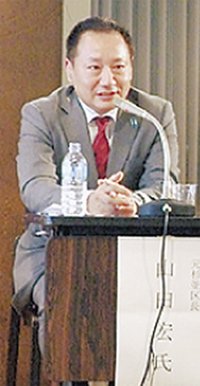 地域の子どもは地域で育てるという趣旨のもと、元東京都杉並区長・山田宏氏が講演。終戦後、日本は「宗教心、道徳、歴史への尊敬、この3つを捨て去ったことで教育がなりたたなくなった」と主張した。また近年、子どもの自尊心が欠如している点にも着目。「自尊心のない人が他人を大事にできるの?」と疑問を投げかけ、そのために「良い学校を作ることが大事で、それにより良い町ができる」と結んだ。