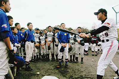 相模原南ロータリークラブ(足立旬一会長)ではこのほど、宮城県黒川郡で巨人軍OBを招いての野球教室を開催した(協力/山形東RC他)。参加したのは宮城県内のリトルシニア9チーム、合計207名。指導は篠塚和典さん、緒方耕一さんら、5名が担当した。