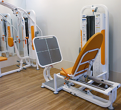 専門職員と介護・看護職員の連携により、入居者一人ひとりの身体の状態に合わせた個別リハビリを通して、健やかな暮らしをサポート。また、認知症に対応する「グループリハビリ」や、マシントレーニングも可能な「介護度進行予防運動」も実施している。