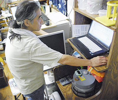 必要な検体量は1リットル。長いときは10時間もかかる。高岡さんは店頭の食品などを計りつつ、市民にもこの民間測定室を開放(有料)。持ち込みの依頼は常にある。