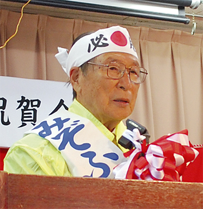 相模原で45年間にわたり市政に携わった功績に対して、今年5月、全国市議会議長会から表彰を受けた溝渕誠之(みぞふちせいし)市議会議員(南区相模台/89)。その栄誉を称えようとこのほど、祝賀会が催され(主催/みぞふち誠友会)、会場となった誠心第二幼稚園(同)は多くの来場者で溢れかえった。