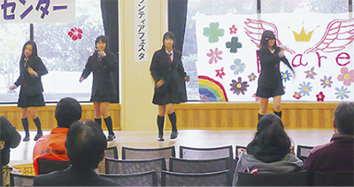 県立上鶴間高校(南区上鶴間本町)の生徒によるアイドルグループが先月25日、南区麻溝台で行われたイベントで地域デビューを果たした。このグループ「フレア」は学校の35周年を記念し、結成されたもので、4人の女子生徒(パフォーマー)から成る。アニバーサリープロジェクト自体には、総勢20人の生徒が関わっている。