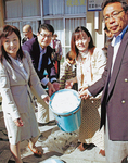 正午、およそ30年前に埋められたポリバケツが丁寧に取り出された。入っていたのは卒業生各自による作文とお気入りの品。当時の担任教諭3名が、30年振りに一人ひとりの名前を読み上げ、それぞれに懐かしの品を手渡した。「私の思い出はやっぱりあのプロマイドでした」(上村さん)。友達にあてた手紙や、遠足の写真、また教室に掲示していた手書きの時間割、給食当番表などもあった。