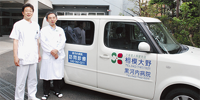 また急性期一般病院として黒河内病院が行う訪問診療の”強み”として、院内にベッドや付属する介護老人保健施設を持っていることをあげ、在宅で診られなくなった際なども対応でき、そういった面からも患者は安心してサービスを受けられるという。