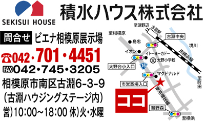 当日は午前9時15分に古淵ハウジングステージ内の積水ハウス展示場に集合。午前9時30分に出発、昼12時半に解散予定。完全予約制で、応募締切は9月30日(月)。席に限りがあるのでお早めに。申込みは電話またはFAX(住所・氏名・電話番号・人数を明記)で受付。問合せは次へ。