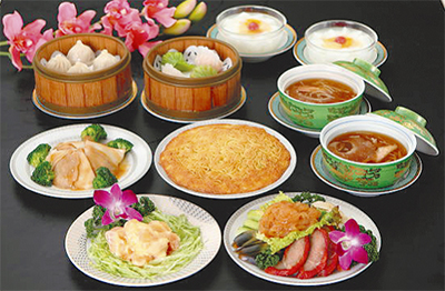 本紙特典としてフカヒレ、エビチリなど豪華な梅コース5250円=写真下=が、注文時に「タウンニュース見た」で、3500円に!(又はドリンク1杯サービス)。
