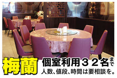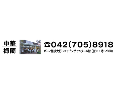横浜中華街に本店を構える「梅蘭(ばいらん)」が、ボーノ相模大野6階にも登場中。以来、「お手頃に本格中華を近場で味わえる」とあって人気を集めている。名物「梅蘭焼きそば」はもちろん、特にこの時期おススメは、忘&新年会で利用できるお得なコース。1人1980円から(+1500円で飲み放題も)。円卓4人〜、店貸切は40人〜OK。