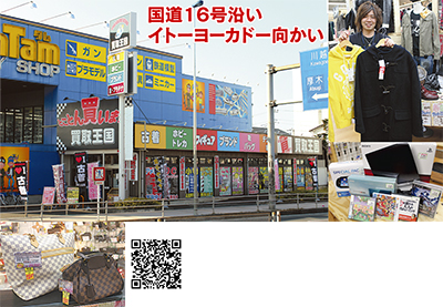 名古屋市を拠点に東海地方で店舗を展開、昨年関東1号店として国道16号線沿いに開店したリサイクルショップ「買取王国 相模原古淵店」(南区西大沼/ジャスダック)。同店では自宅に眠っている”使わなくなった物”を買い取ってくれる。衣料品から金券、おもちゃまでその取扱いの多様さが評判だ。