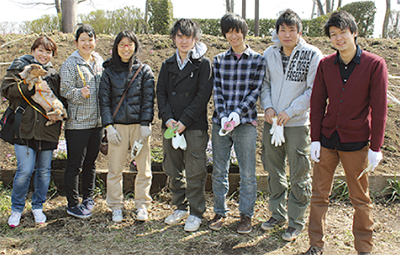 そこで梶山さんは学生に対し、保存会を応援することを提案。2012年の夏頃から保存会の除草や植栽を学生が手伝い始めた。そして昨夏頃、保存会から学生へ斜面一区画の管理が打診された。保存会の児玉会長は「泥まみれになって自分が植えたものを観るのは違うと思う。他の大学にも浸透してくれれば」と話す。モフの五十嵐章太郎さん(20)は、「大きな区画を任され、緊張しているが、皆で楽しく仲良くやれたら」と意気ごみを語った。