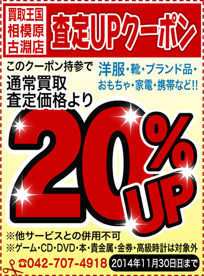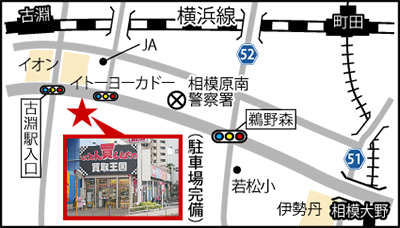 国道16号線沿い、イトーヨーカドー向いのリサイクルショップ「買取王国 相模原古淵店」(南区西大沼/ジャスダック上場)は現在、衣料品(特に冬物)の買い取りを強化中。
