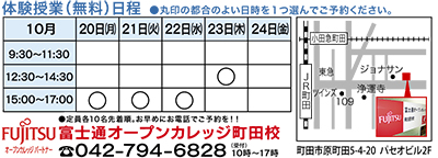 秋季クラス開講にあたり、下記日程で2時間の無料体験授業を実施する。