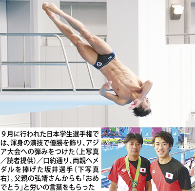 韓国・仁川で1カ月にわたり行われたアジア大会の男子3m板飛び込みで、相模原市出身の坂井丞(しょう)さん(日本体育大学4年)が3位に入賞し、2度目の出場で初の銅メダルを獲得した。アジア大会の飛び込み競技において、日本人男子のメダル獲得は2大会ぶり。