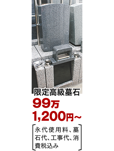 墓地は永代使用料・墓石・工事代・消費税すべて込みで99万1200円からと、求めやすい価格。年間管理料は5000円。案内会は12月25日(木)まで。同社定休日の月曜日と、11月30日(日)以外は毎日開催している。スタッフの駐在時間は午前9時から午後3時まで。「お気軽にお問合せ・ご見学を」と同社。問合せは左記へ。