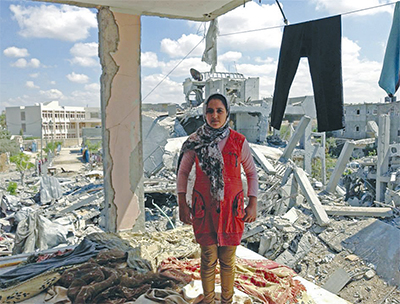 「ガザ北部に住むイナムさんは06、08/09、12年、そして今回と、8歳のときから数えてこれまでに4回戦争を経験している。『戦争しか知らない』子どもたちの1人だ」(資料より抜粋)。清田さんがガザを訪れた際、イナムさんの母親は「(娘は)平和で自由のある世界で、世界中にどこにでもいる普通の子どものように、日々を楽しんでほしい」と話したそう。この夏のイスラエルとの50日間の戦争でガザの一般市民1500人が命を落とし、10万人以上が家を失ったと言われている。