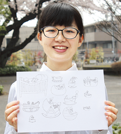 「長く愛着を持って使ってもらえるよう意識しました。子育ては辛いことや悩むことも多いかと思いますが、この手帳を見て少しでもホッとした気持ちになってもらえたら」と長岡さん。将来は広告企画やデザイン関係の仕事に就き、「自分が作っていて楽しいもので、みんなが楽しくなるもの」を作るのが夢だ。
