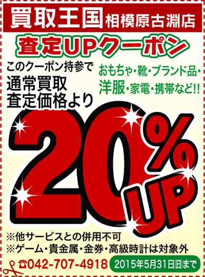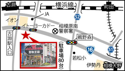 左上のクーポンで5月31日(日)まで査定額が20%UPとグッとお得に。査定・見積もりは無料。駐車場は80台を備える。また現在パート・アルバイトおよびネット出品専任者を募集中。時給は890円。詳細は下記。