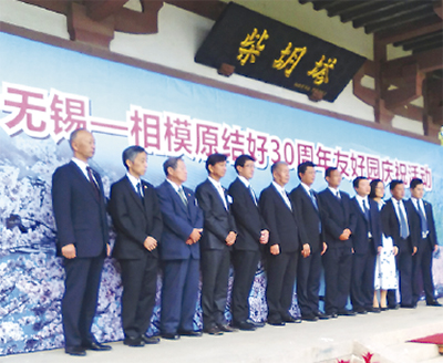 これを記念して8日、無錫市で記念式典が行われ、相模原から小星敏行副市長ら市関係者や、市日中交流協会など約50人が参加。無錫では汪泉市長や人民政府、市民など約60人に迎えられた。