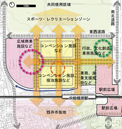 現在、返還地の跡地利用を巡っては、学識経験者や市民などで構成される検討委員会が組織され、2015年度末までの整備計画案策定に向け協議が進んでいる。同委員会においても会議や展示場などで利用できる国際コンベンション施設は、大規模な学術会議などに対応できる施設がない相模原市において、跡地に導入すべき機能のひとつとして挙がる。10月9日の同委員会小委員会でも、一部返還地の土地利用案が3案示され、規模は敷地面積約5000〜5万平方メートル、延べ床面積約3〜8万平方メートルを想定。客室数200室程度のホテルと複合で導入する案が示された。